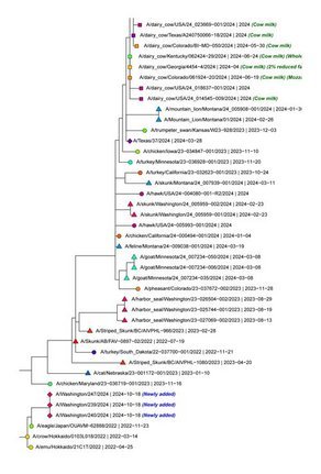 Clade 2.3.4.4b of the highly pathogenic avian influenza (HPAI) virus causing outbreaks in wild and domestic birds around the world continues to spread in dairy cows, poultry and other animals across the United States. Since April 2024, the U.S. CDC confirmed 70 human cases through genome sequence analysis. Data in some of these cases showed the amino acid substitution NA-S247N known to slightly reduce susceptibility to the neuraminidase inhibitor oseltamivir in laboratory tests. In one case, a different change in the polymerase acidic (PA) protein was detected.