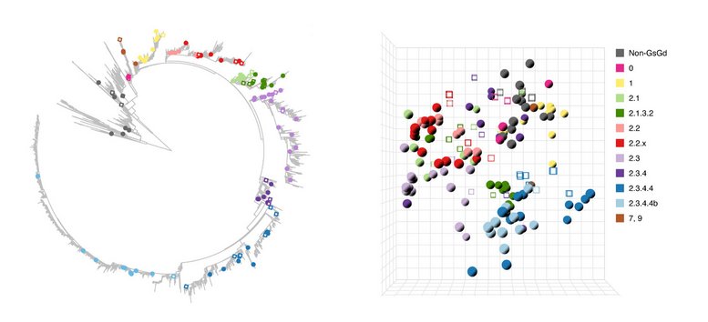 Using genome sequence data shared through the GISAID Initiative, the researchers performed a comprehensive analysis of the antigenic evolution of A(H5) influenza viruses using antigenic cartography, a tool that enables visualization and quantification of antigenic changes over time.