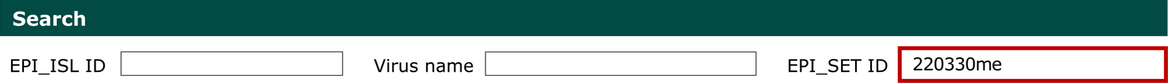 EPI_SET IDs can also be used by registered Users in the Search filter of the EpiCoV™ database to retrieve all records that are part of the dataset used in an analysis.