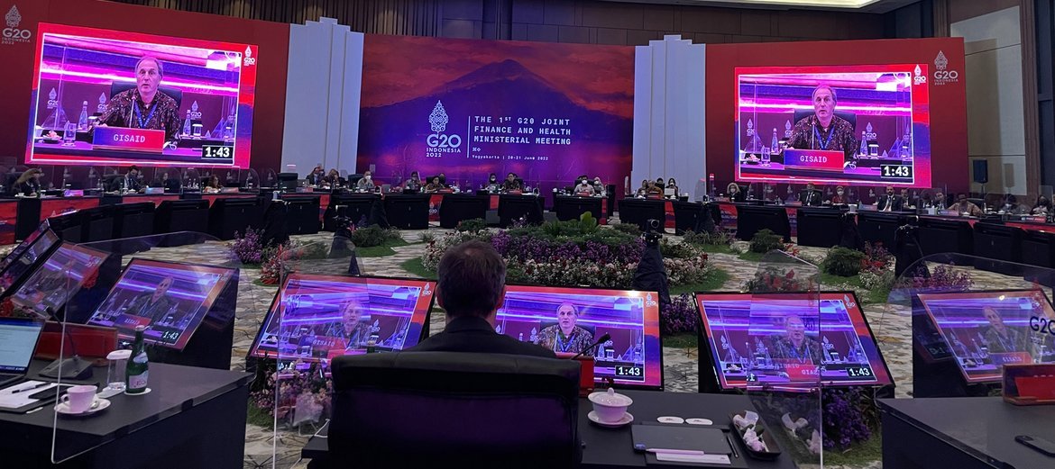 Yogyakarta, 20-21 June. Under the motto ‘Strengthening Global Health Architecture’ a delegation from GISAID attended the G20 Finance and Health Ministers meeting hosted by Indonesia, to discuss with G20 Member States’ and its partners their vision for GISAID+ (GISAID plus).